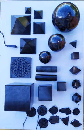 Formes diverses, Solides de Platon, Harmonisateurs, Plaques de rechargement, Pendentifs variés, Pendentifs fleur de Vie, Protections téléphone...